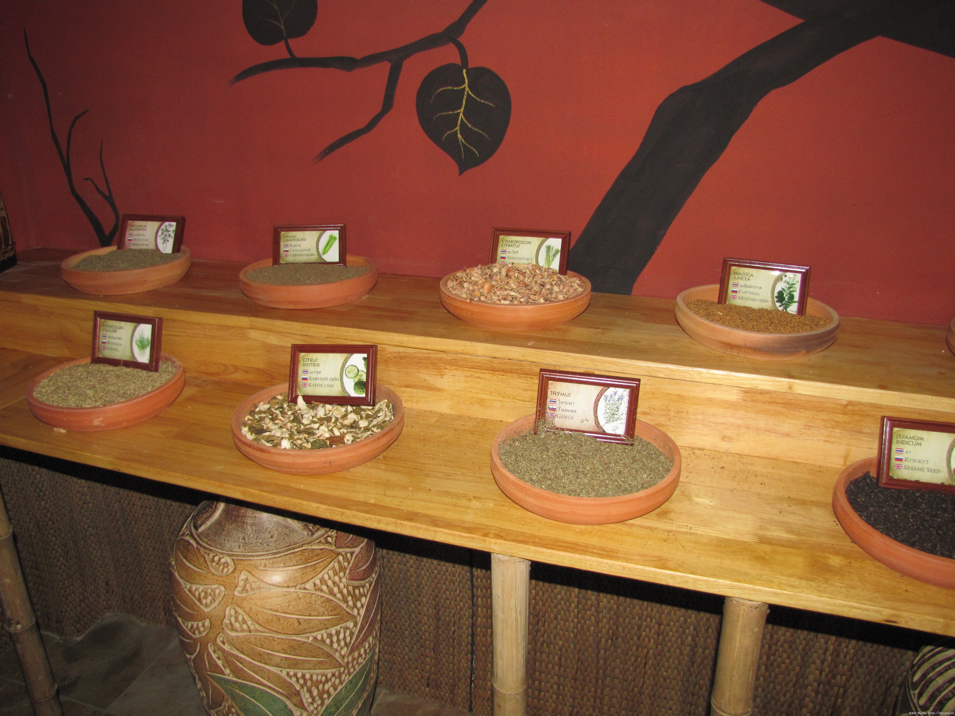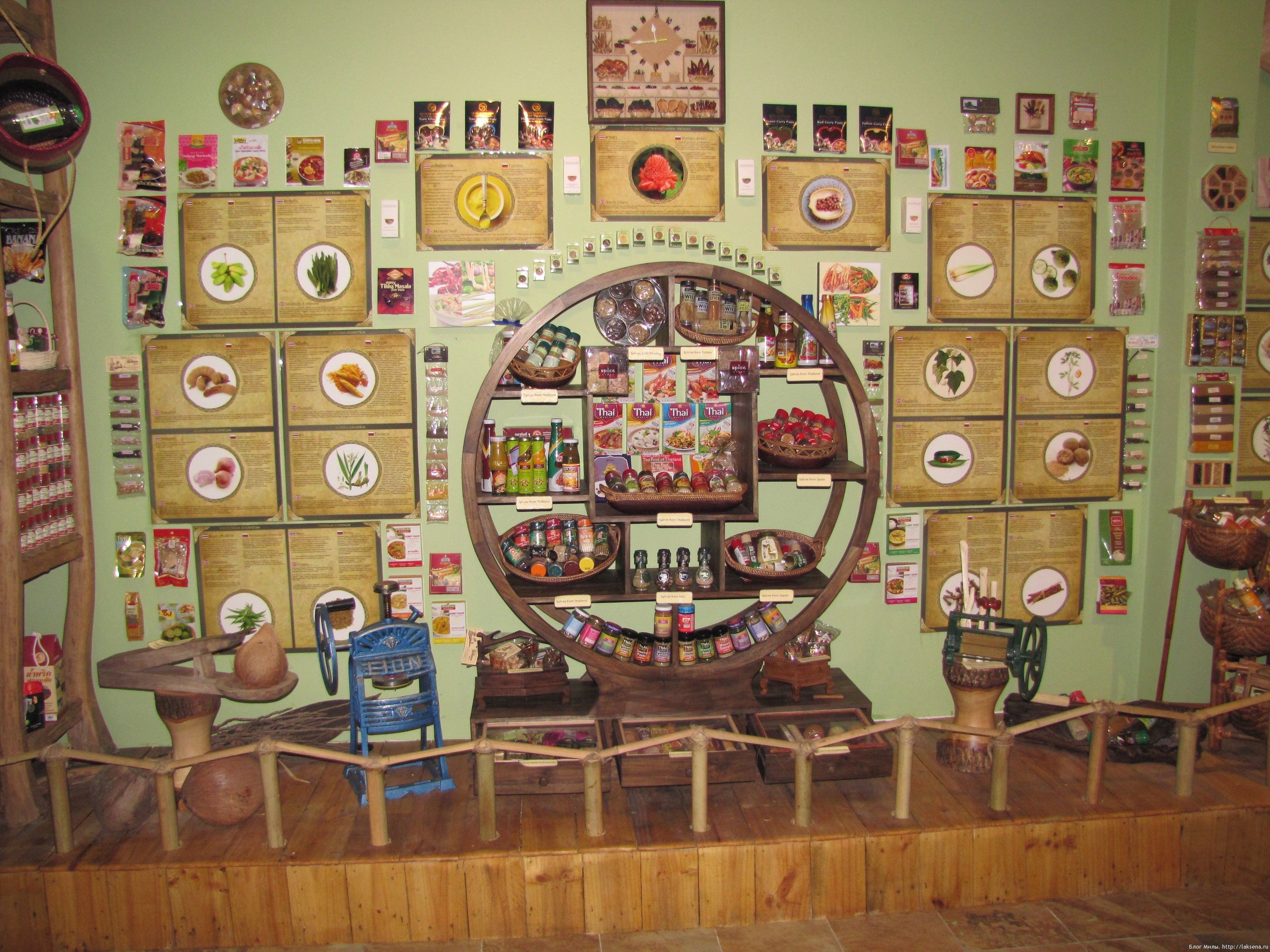 А также можно посмотреть, потрогать, понюхать образцы множества специй, которые выставлены в зале