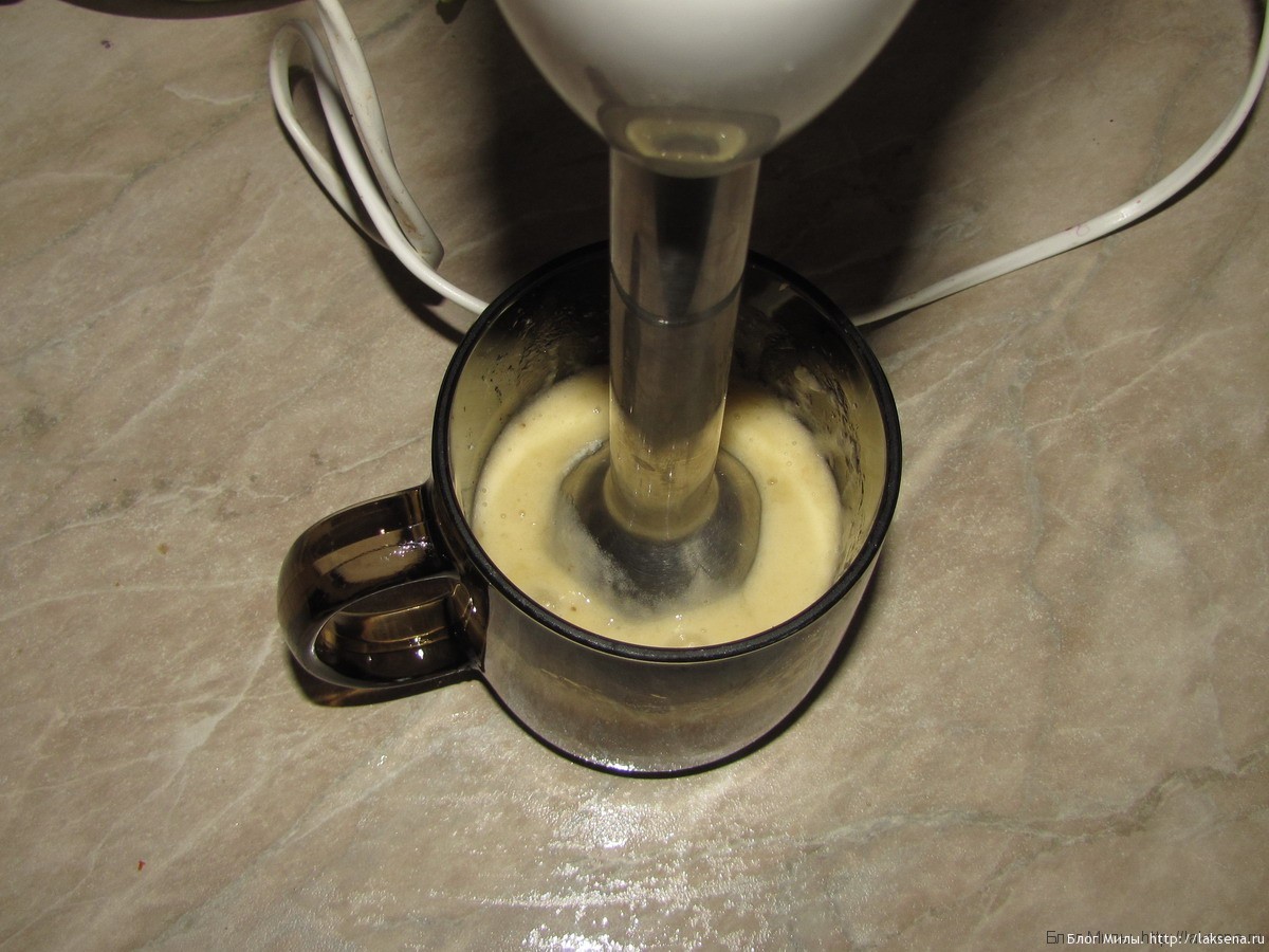 Взбить блендером. Для небольшой порции удобно использовать погружной блендер.
