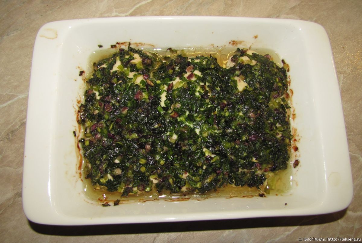 Дать постоять час, помариноваться. Поставить запекаться в нагретую до 180 градусов духовку на 40 минут.