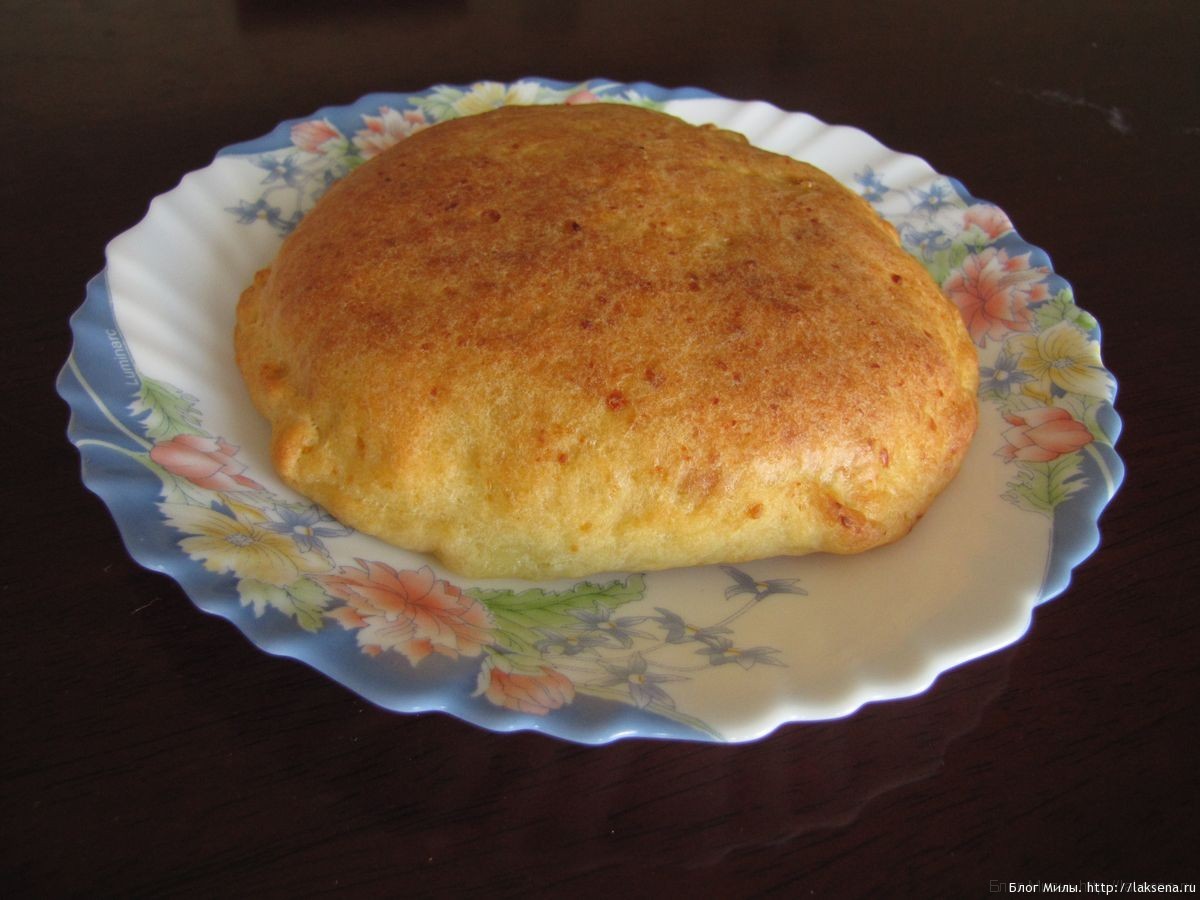 Тесто разделить на части по количеству пирожков (я делала шесть пирожков-лепешек). Каждую часть разделить еще пополам и раскатать в лепешку толщиной 0,5 см. На одну лепешку положить начинку, сверху прикрыть второй лепешкой и защипать края. Верх наколоть вилкой. Переложить на лист для выпечки.
