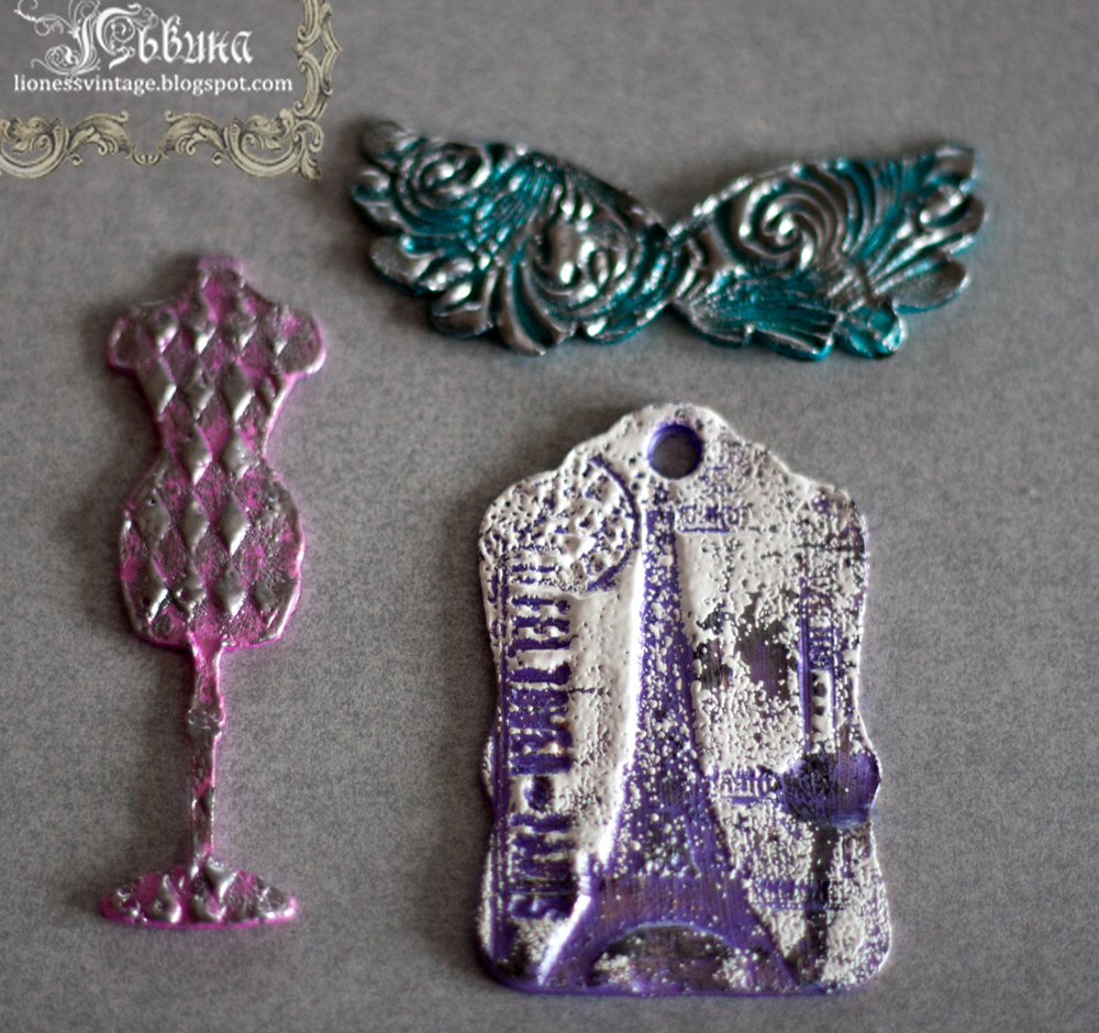 По окрашенной поверхности прошлась по выпуклым частям металлическими оттенками