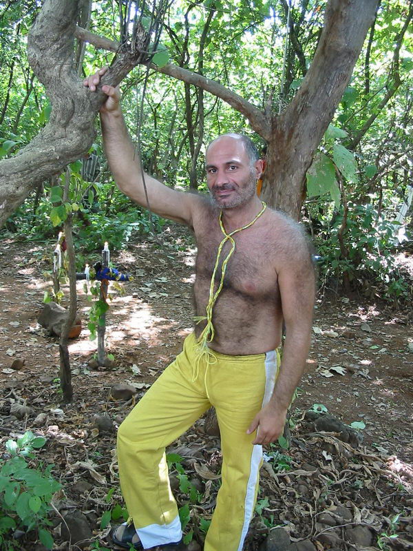 Еще более экзотичным персонажем оказался пятидесятилетний Сергей. Бывший диссидент, пьянчуга и матерщинник, он был убежден, что уже достиг вселенской мудрости и потому время от времени поучал Малхаза и всех окружающих. Сергей был коренаст, бородат и волосат. Сам Карл Маркс мог бы позавидовать его гриве. В руке киевлянин постоянно перекатывал металлические шары, а на плече у него сидел тощий кот, привязанный веревочкой. Мудрец плохо говорил по-английски и на хинди, но и этого словарного запаса ему хватало, чтобы ругаться, кривляться и поучать окружающих. Местные прозвали Сергея «баба» с ударением на последний слог, что на хинди означает «уважаемый». Именно так он обращался ко всем без исключения индусам. На съемках Сергей играл сам себя – сидел под кустом, крутил шары и затягивался здоровенным косяком с марихуаной.