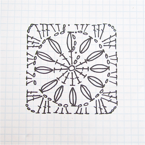 Плед маленький, 40х50 см, т.к. вязался под заказ, для конверта, но вы без труда можете его увеличить. Внизу есть схема мотива.