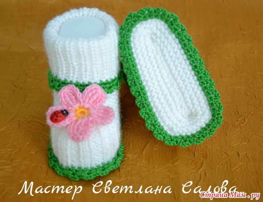 Вновь связала пинетки из пряжи пряжи BAMBINO 25% шерсть, 75% акрил, 130 м, 50 гр. спицами 2.5...