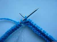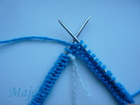 Далее вспоминаем про наши боковые петли и, введя в работу синюю нитку начинаем вязание вот отсюда: