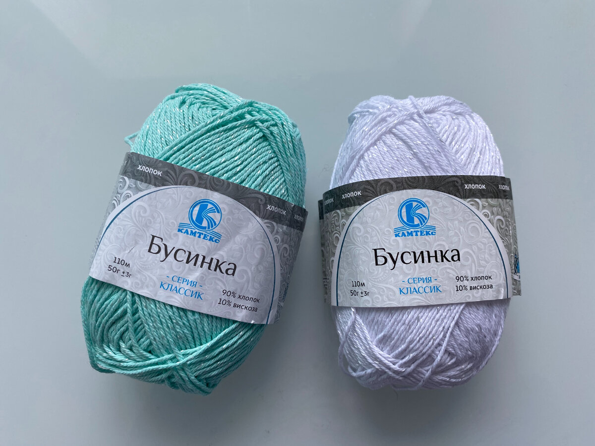 Совершенно случайно у меня в остатках был хлопок слишком жесткий для вязания одежды. Покупала для покрывала, осталось 200гр белого и 250 гр. мятного. И звезды сошлись.