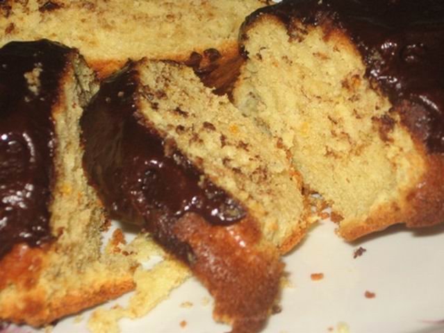 По желанию поливаем растопленным шоколадом (можно белым) или посыпаем сахарной пудрой, режем и едим с удовольствием!