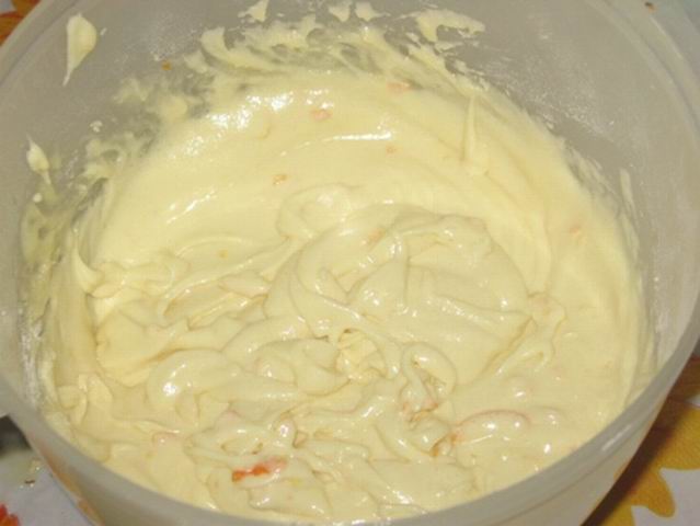 Перемешали, добавляем уедру и постепенно апельсиновый сок