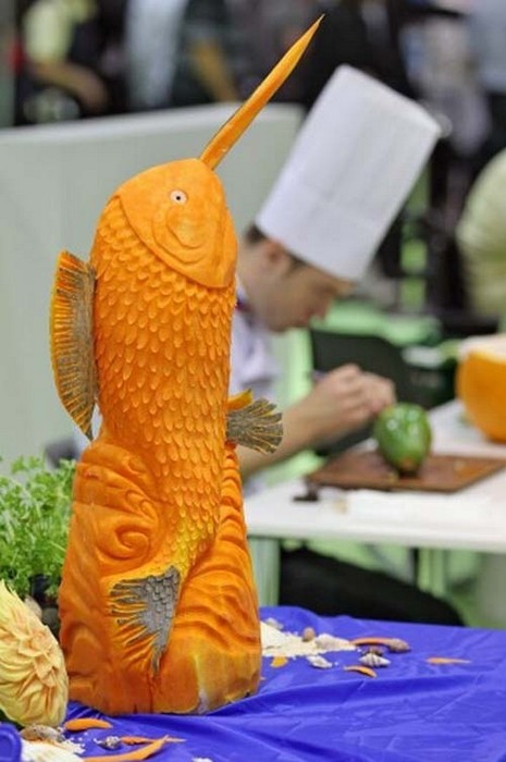 Мастера карвинга на чемпионате Европы. Тыквенная рыбка