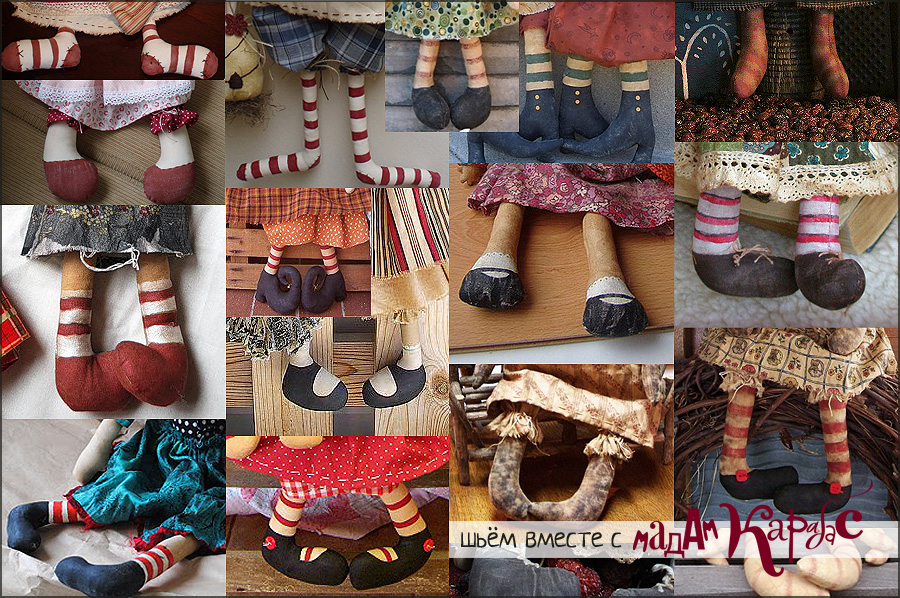 В конце работы можно носки и ботинки протереть мелкой шкуркой. Чтоб акриловое покрытие не выглядело таким новым, мы ж шьем примитивную куклу и старим её. А у старой куклы не должны быть такие новые ботинки!