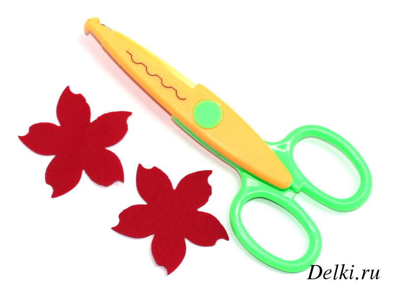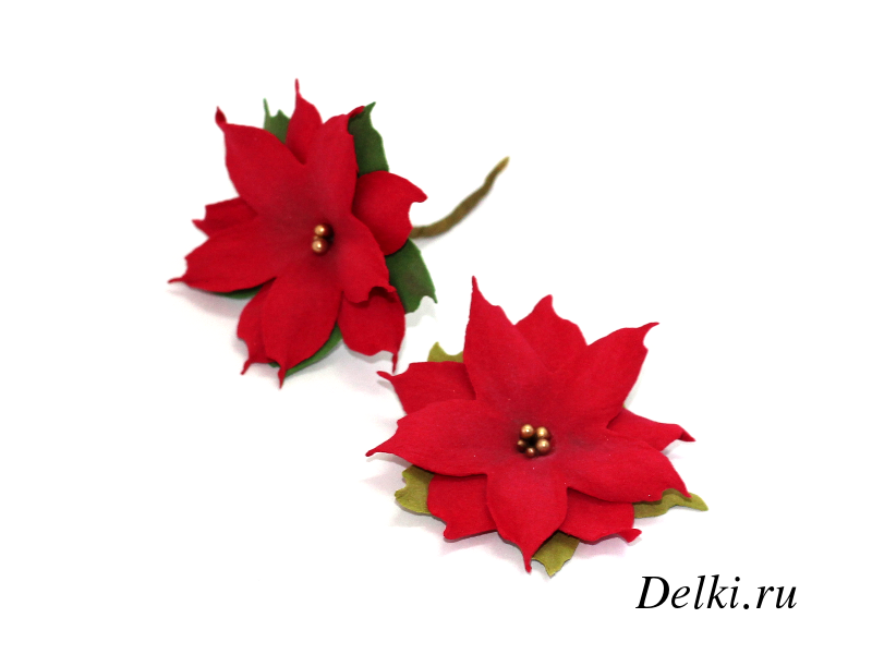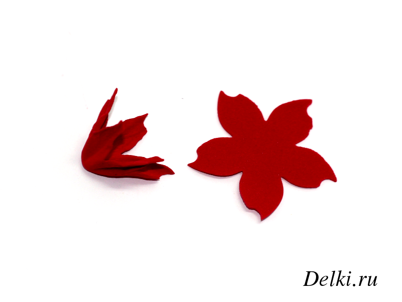 Вырезаем дыроколом из красного фоамирана две фигурки цветка. Это будут красные прицветники нашей рождественской звезды.