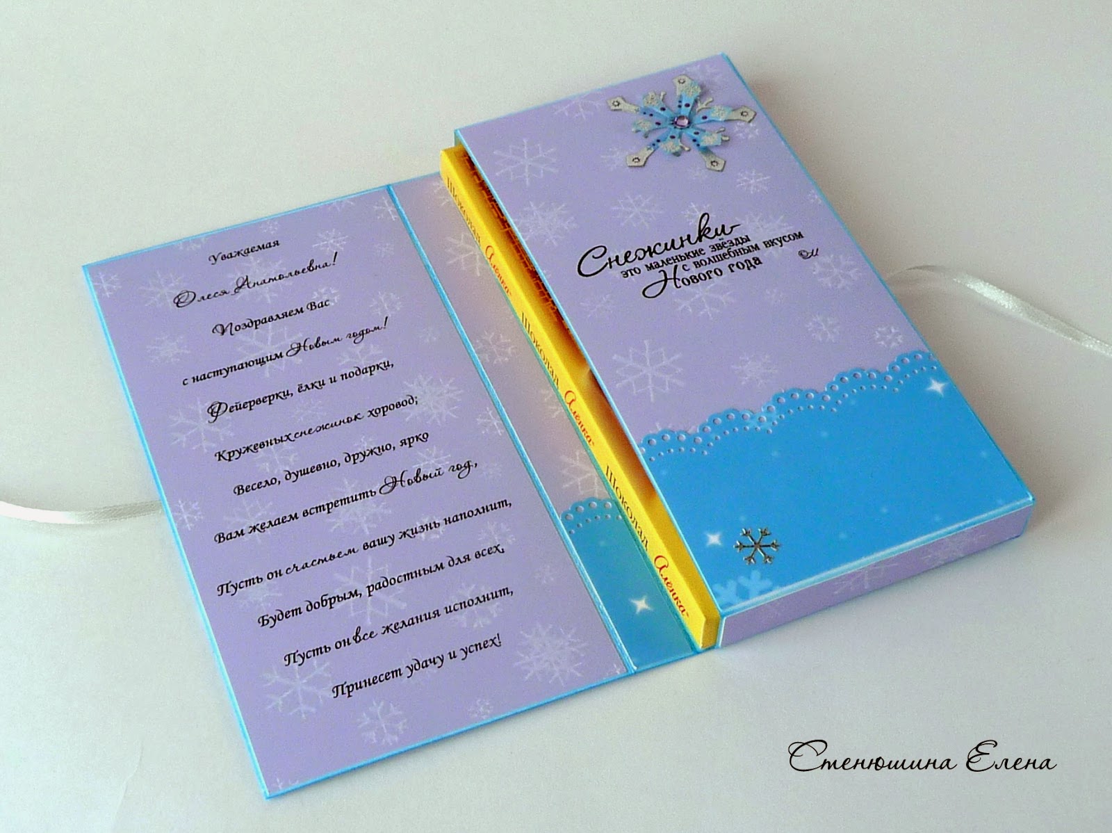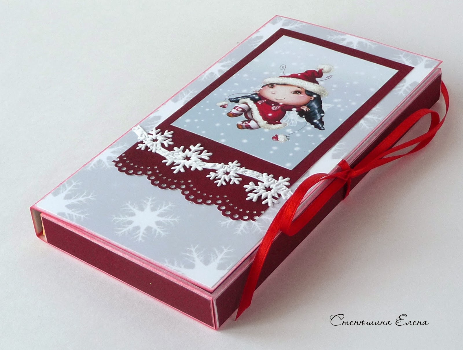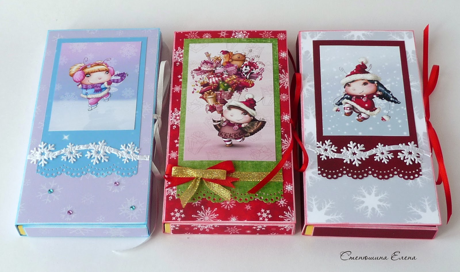 До Нового года осталось совсем чуть-чуть и подготовка к нему в полном разгаре. Вот такие открытки-шоколадницы с козявочками от Линмида получились у меня в подарок воспитателям дочки.