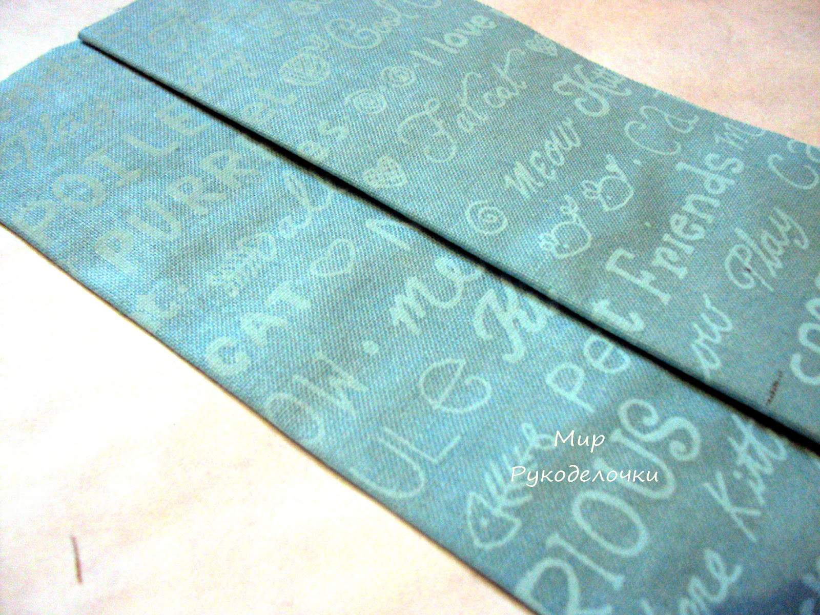 Далее, вырезаем 2 прямоугольника для кармашков 15 на 13см, (сторона в 13 см будет в будущем сложена пополам.)