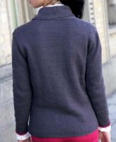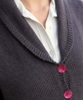 Вязание спицами жакета глубого серого цвета с контрастными отделками цвета фуксии.