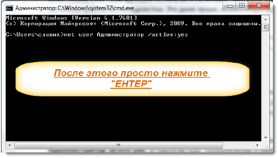 net user Aдминистратор /active:yes (для русской версии)