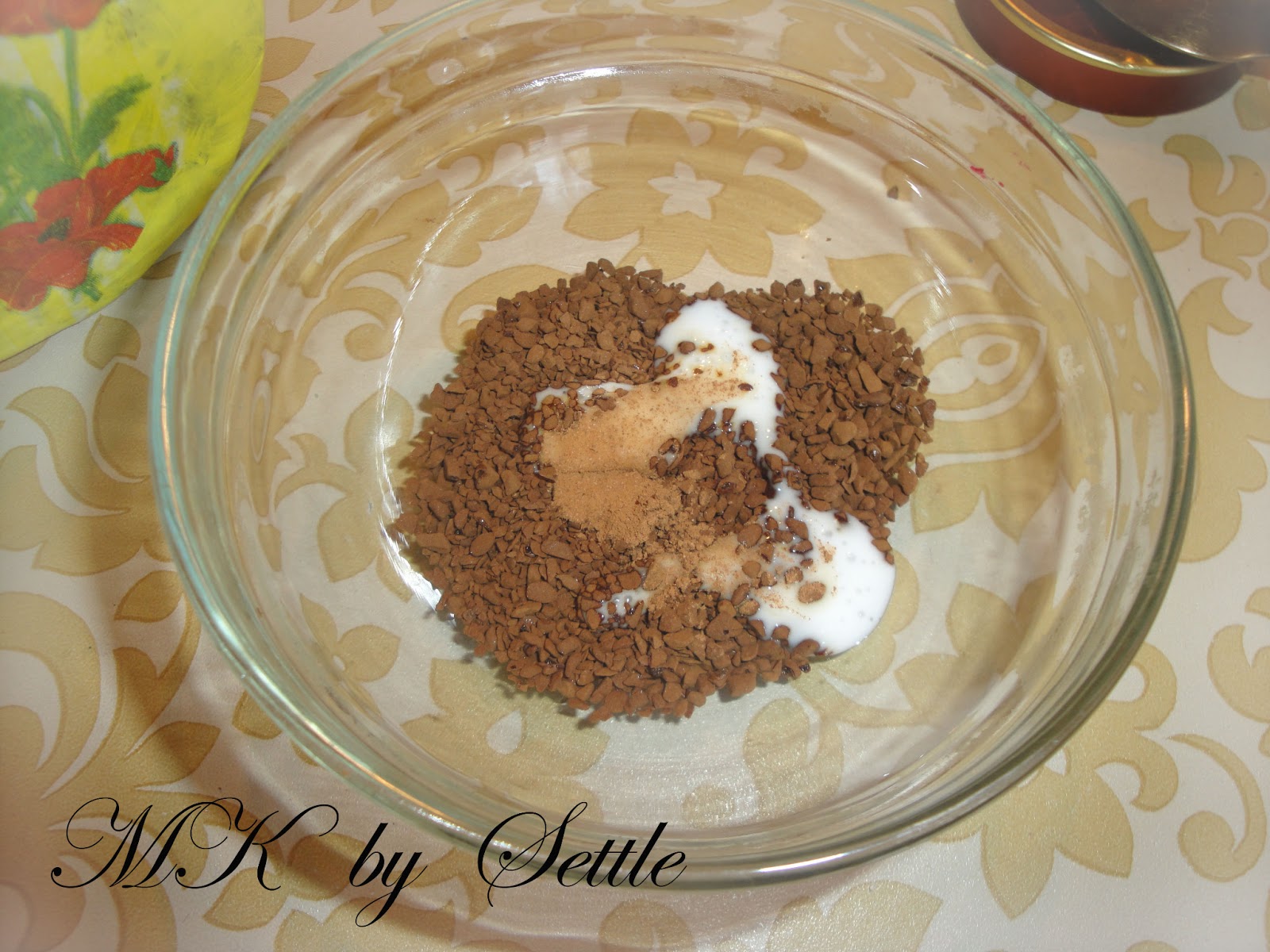 Самый важный процесс,окрашивание!Для насыщенного цвета,берем 2 ложки растворимого кофе,щепотку корицы и примерно 1,5 ложки ПВА.Все это заливаем кипятком,я все делаю на глаз,обычно добавляю совсем немного воды.