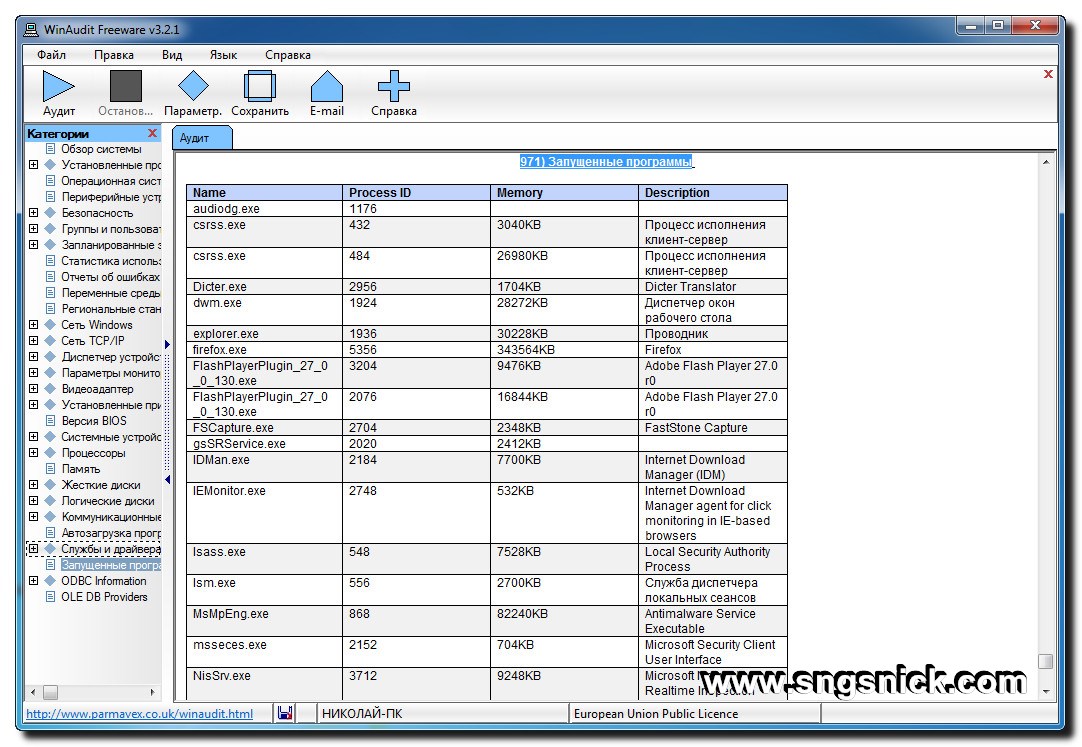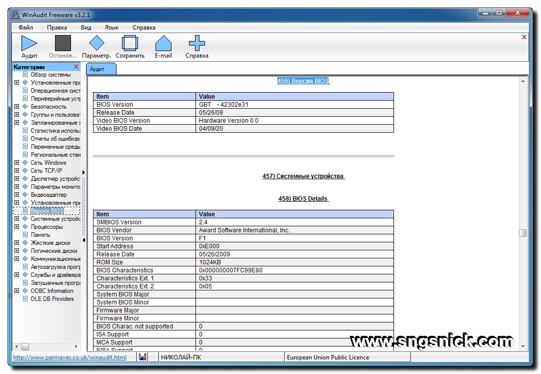 При подготовке статьи использовалась портативная версия программы WinAudit 3.2.1 Rus Portable на русском языке.