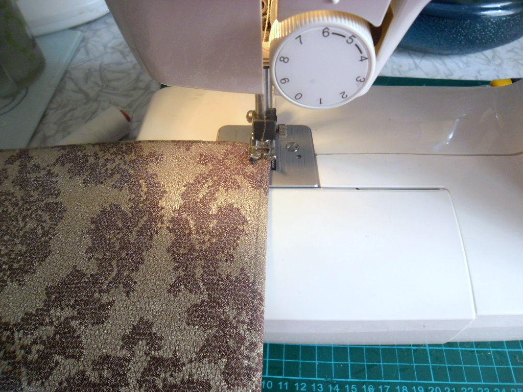 5.Теперь при помощи линейки и карандаша с лицевой стороны откладываем по 0,5 см с каждой стороны и проводим карандашом линии. Затем по ним прокладываем машинную строчку.