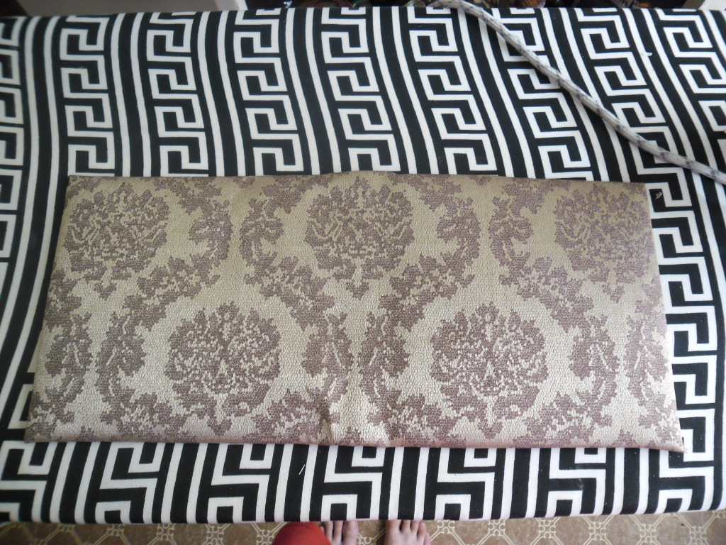 3. Далее берем ткань, выбираем какая сторона будет лицевой, и кладем на гладильную доску вниз . Нашу будущую обложку кладем лицевой стороной на ткань.