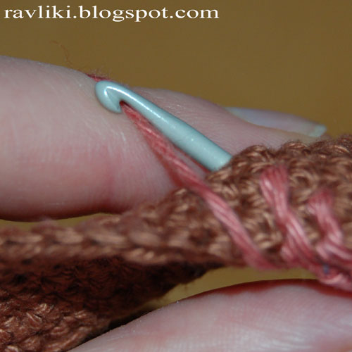 Вводим крючок под столбик указанный на схеме. В моем случае, под третий сверху.