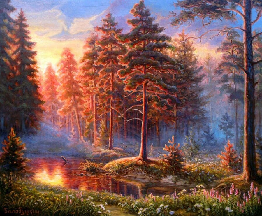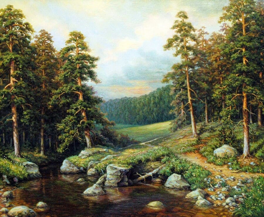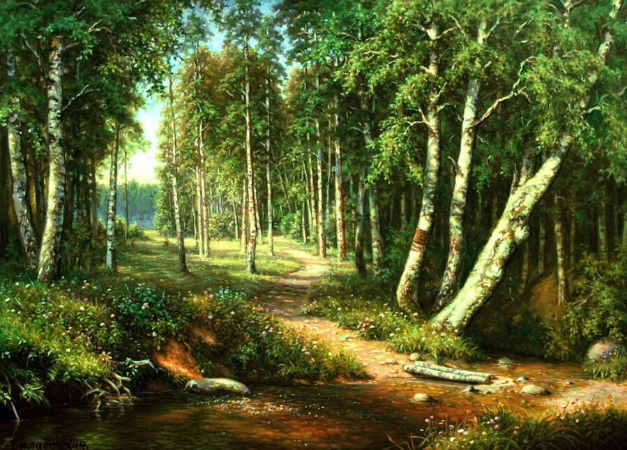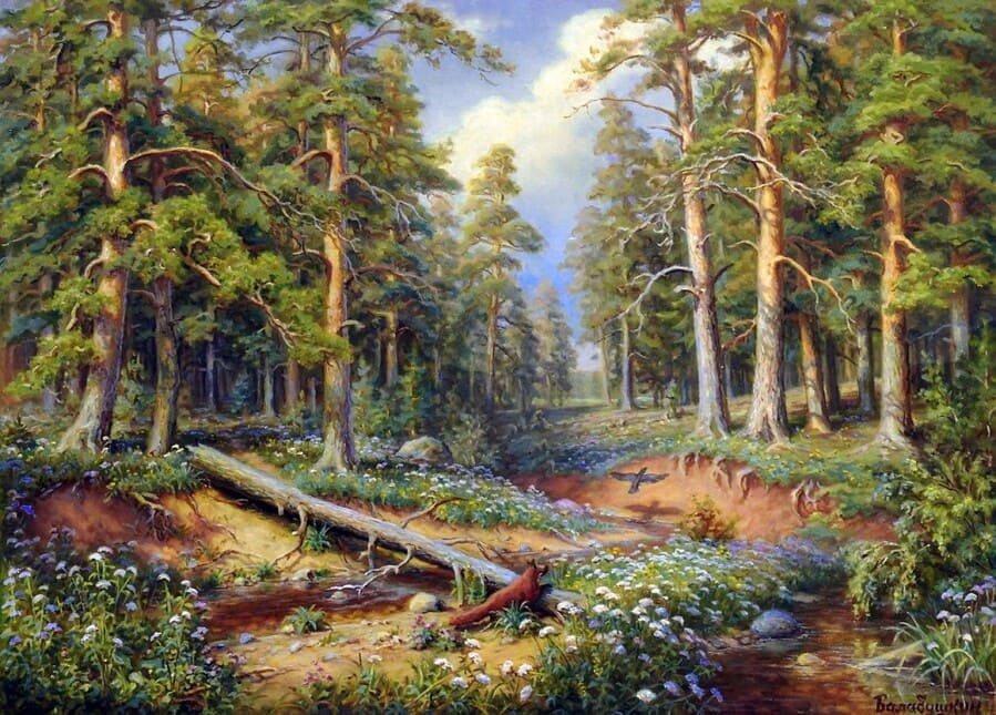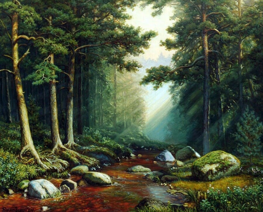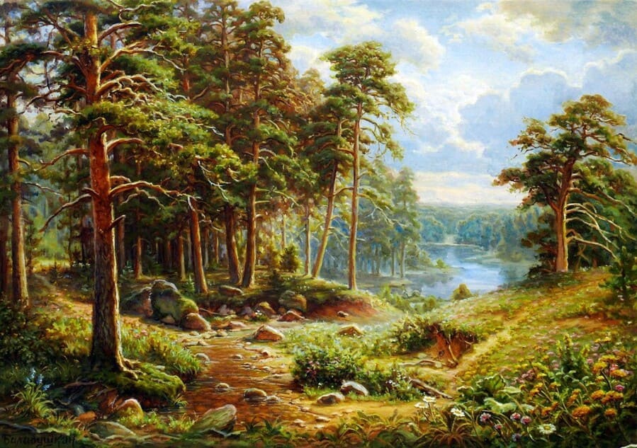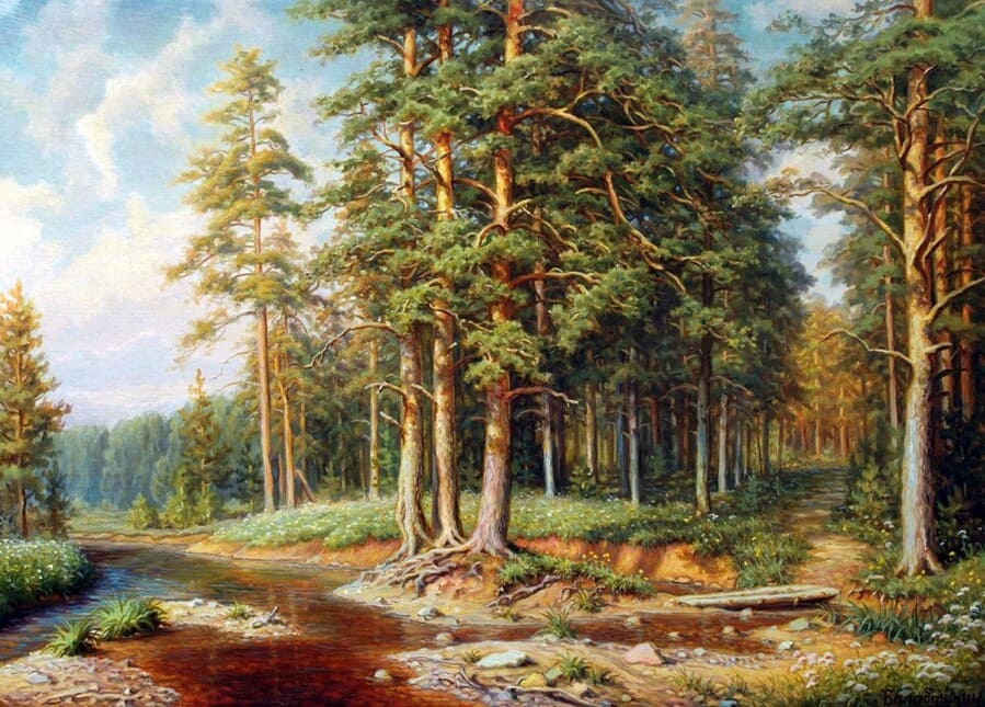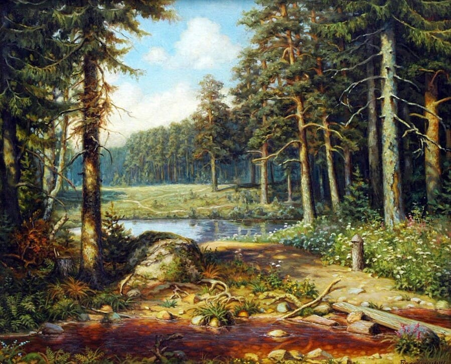 Шумят сосновые леса, И сосны стройные, литые, Как будто стрелы золотые. Уходят смело в небеса. Шумят сосновые леса, Как будто шепчут, что когда-то Скользили по морям фрегаты, Бриз надувал их паруса. Их нес с собою бег волны, А строили их из сосны! Шорыгина Т. Сергей Владимирович Балабушкин (Россия, 1969) ПейзажноЛетнеЛесное (часть-1) Церковь Преподобного Серафима Саровского в Песочном В лес вхожу, как в храм зелёный, А в душе - благоговенье; Там меня встречают строго Величавые деревья. По ковру из трав зелёных, По подушкам мха, иголок, Мягко - бережно ступаю: Тут ложбинка, там - пригорок Вот берёзки и осинки, Торопливой стайкой сжались; А под ними, как картинки, Напоказ, грибы сбежались. Подосиновиков - войско, В шляпах светло - рыжеватых. Сыроежки и маслята - Демонстрировали шляпы! Очищаю шляпы нежно От травинок и иголок. Чувство радости - безбрежно, Средь осин, берёзок, ёлок! По ложбинкам, по пригоркам, Мягкой тропкою - дорожкой, Я ступаю осторожно... Радость дня несу в лукошке! (Маргарита Володина 2) В лесу все кажется другим: вкус еды, воздух, мысли. Человек становится чище. Порой нам всем нужно бежать в леса, дабы не потерять себя. Здесь мы обретаем душевный комфорт, постигаем свою истинную сущность. Художник Сергей Владимирович Балабушкин родился в 1969 г. в г. Ленинграде. Закончил Ленинградский инженерно-строительный институт, архитектурный факультет. Живопись, так или иначе, проходит через всю мою жизнь. Рисовал я всегда. С детства и в юности - это графические работы и акварели. Сергей Балабушкин – большой мастер, настоящий художник со своей особенной манерой. В свое время Сергей Владимирович закончил Ленинградский Инженерно-Строительный институт (архитектурный факультет), работал в художественной мастерской Военно-Медицинской Академии. Провел персональные выставки в Союзе художников и ЦКТИ имени Ползунова. В настоящее время - свободный художник. Пишет картины маслом. Да, влияние И.Шишкина на его манеру письма чувствуется, но вместе с тем его собственные работы ярче, праздничнее и созданы в своей собственной манере, наполнены любовью к изображаемому пространству и каким-то особым теплом и настроением. Это поистине праздник души.