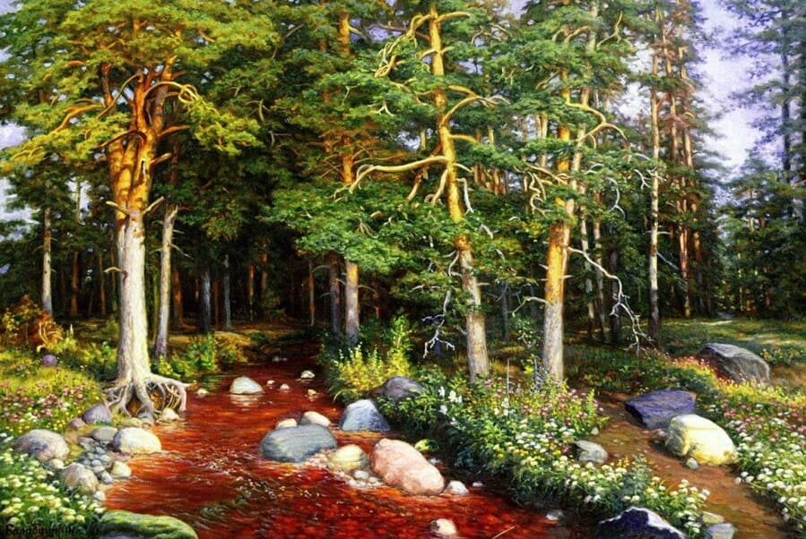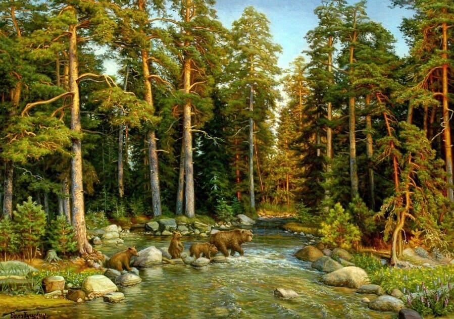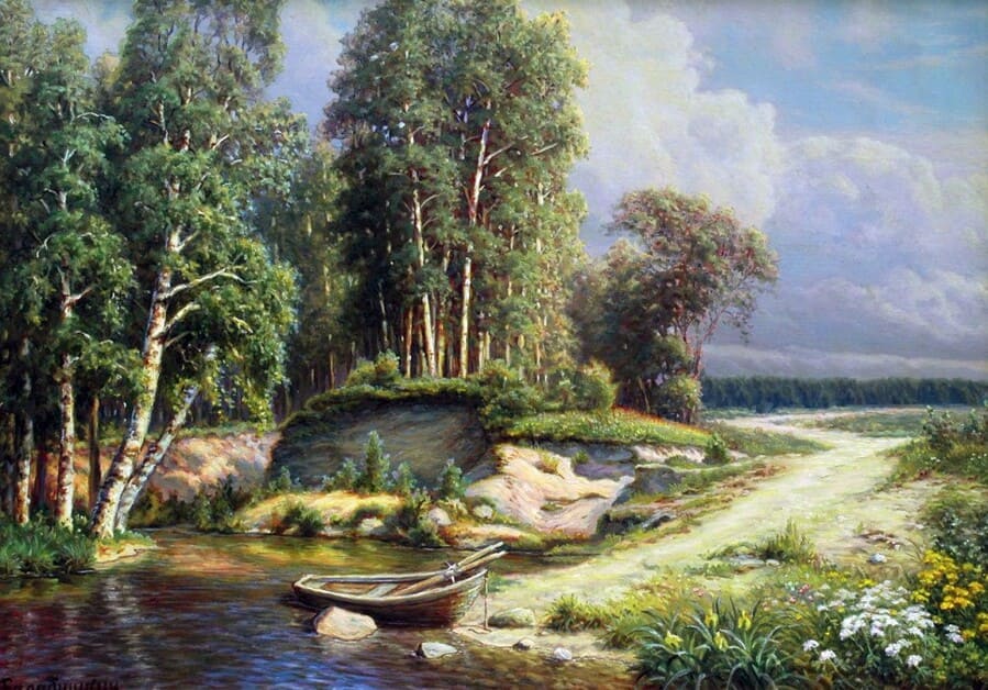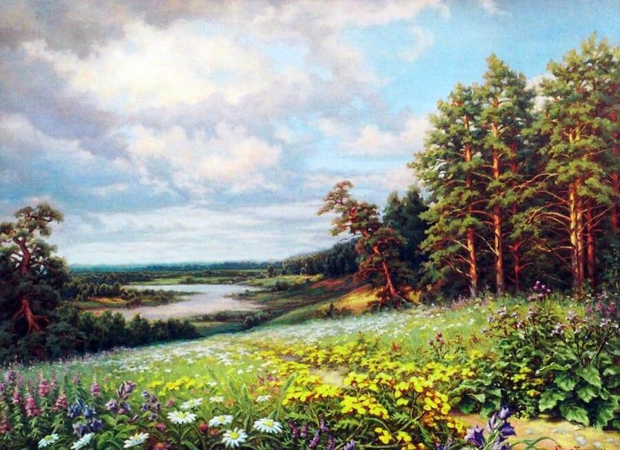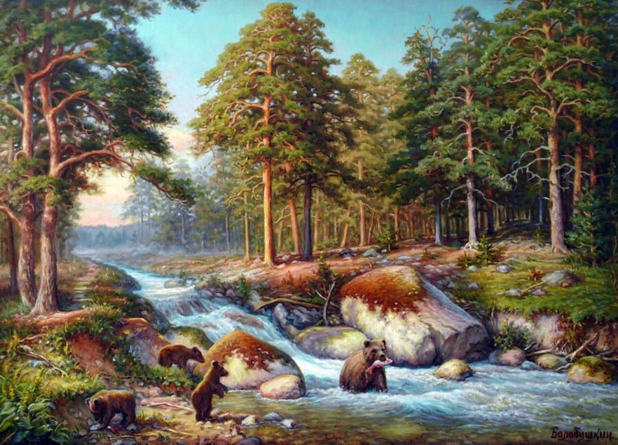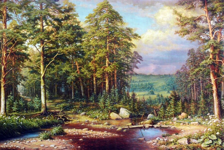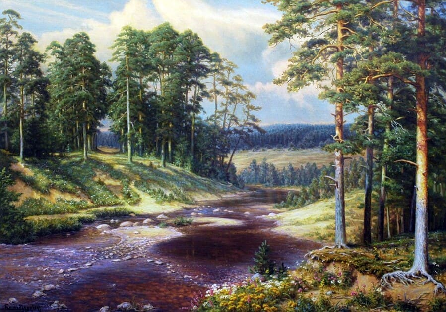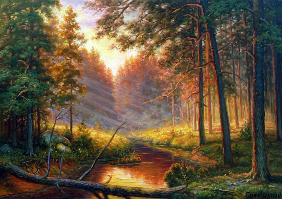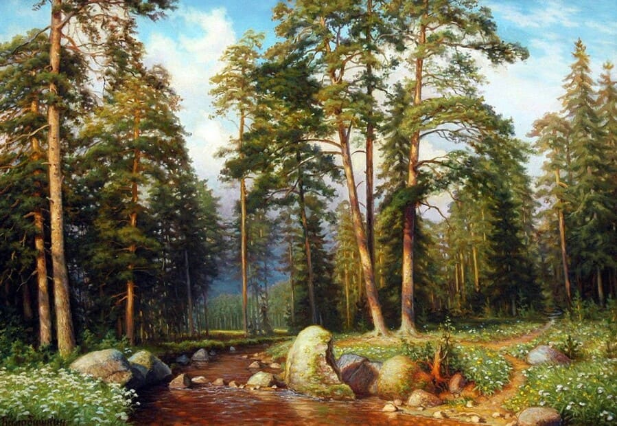 Шумят сосновые леса, И сосны стройные, литые, Как будто стрелы золотые. Уходят смело в небеса. Шумят сосновые леса, Как будто шепчут, что когда-то Скользили по морям фрегаты, Бриз надувал их паруса. Их нес с собою бег волны, А строили их из сосны! Шорыгина Т. Сергей Владимирович Балабушкин (Россия, 1969) ПейзажноЛетнеЛесное (часть-1) Церковь Преподобного Серафима Саровского в Песочном В лес вхожу, как в храм зелёный, А в душе - благоговенье; Там меня встречают строго Величавые деревья. По ковру из трав зелёных, По подушкам мха, иголок, Мягко - бережно ступаю: Тут ложбинка, там - пригорок Вот берёзки и осинки, Торопливой стайкой сжались; А под ними, как картинки, Напоказ, грибы сбежались. Подосиновиков - войско, В шляпах светло - рыжеватых. Сыроежки и маслята - Демонстрировали шляпы! Очищаю шляпы нежно От травинок и иголок. Чувство радости - безбрежно, Средь осин, берёзок, ёлок! По ложбинкам, по пригоркам, Мягкой тропкою - дорожкой, Я ступаю осторожно... Радость дня несу в лукошке! (Маргарита Володина 2) В лесу все кажется другим: вкус еды, воздух, мысли. Человек становится чище. Порой нам всем нужно бежать в леса, дабы не потерять себя. Здесь мы обретаем душевный комфорт, постигаем свою истинную сущность. Художник Сергей Владимирович Балабушкин родился в 1969 г. в г. Ленинграде. Закончил Ленинградский инженерно-строительный институт, архитектурный факультет. Живопись, так или иначе, проходит через всю мою жизнь. Рисовал я всегда. С детства и в юности - это графические работы и акварели. Сергей Балабушкин – большой мастер, настоящий художник со своей особенной манерой. В свое время Сергей Владимирович закончил Ленинградский Инженерно-Строительный институт (архитектурный факультет), работал в художественной мастерской Военно-Медицинской Академии. Провел персональные выставки в Союзе художников и ЦКТИ имени Ползунова. В настоящее время - свободный художник. Пишет картины маслом. Да, влияние И.Шишкина на его манеру письма чувствуется, но вместе с тем его собственные работы ярче, праздничнее и созданы в своей собственной манере, наполнены любовью к изображаемому пространству и каким-то особым теплом и настроением. Это поистине праздник души.