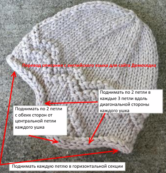 Для отделки нижнего края шапки, поднимать петли как показано на фото.