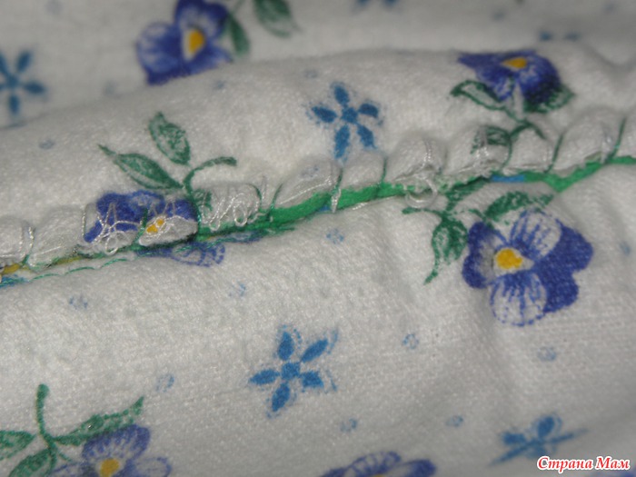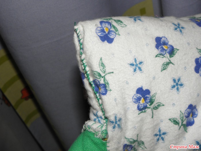 Можно фланель одного цвета использовать, просто у меня был кусок зеленой фланели и несколько отрезов белой в цветочек.