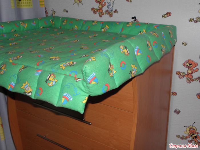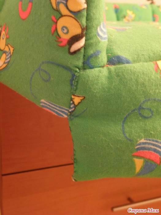 Пришив передний бортик лучше надеть наш матрасик на комод и прямо на нем сшить уголки бортиков чтобы они не топорщились.