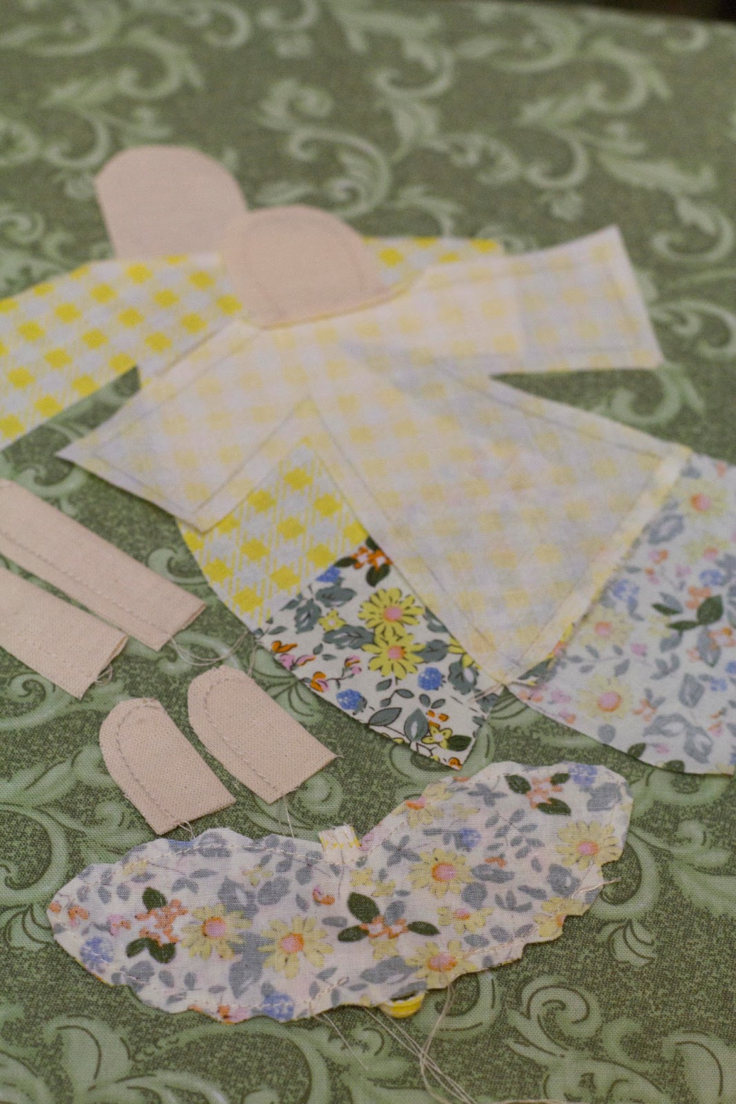 2. скалываем детали, пользуемся опять "контрольными точками" - это, прежде всего, стык головы с платьем;