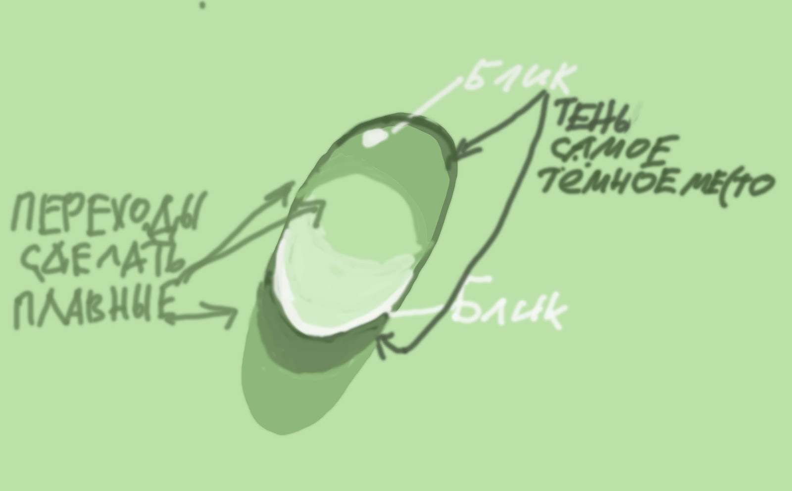[320x220]Берём тон краски темнее фона и рисуем форму капли. Верхняя часть линии останется такой же тонкой. А нижнюю надо увеличить на ширину диаметра капли, это её тень.