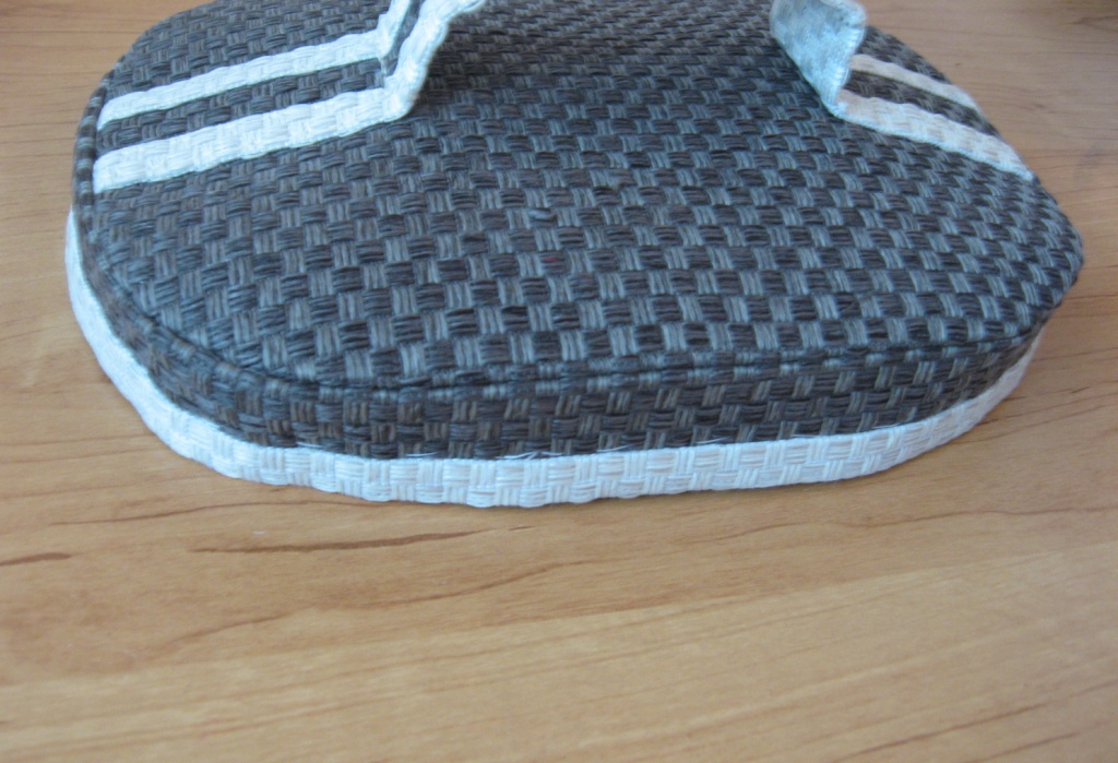 Стенки косметички состоят из двух частей (швы располагаются по бокам). Детали проклеиваем дублерином и пропареным синтепоном.