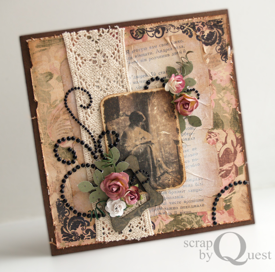 Херитаж (англ. heritage- наследие). Этот стиль в основном используется для оформления действительно старых фотографий. Для него подбирают подходящии элементы: старые кружевам, ленты, ключики, бумага, старые письма и конверты, надписи перьевыми ручками, или печать на старой печатной машинке. Конечно, в принципе, вы можете заменить все это похожими или состаренными элементами. Гамма в основном ограничивается бежево-черно-бело-коричневыми.