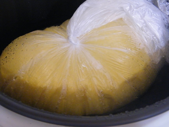 Пока закипала вода (как известно, отчет времени на этом режиме начинается только тогда, когда жидкость закипит, что нам и нужно!) я взбила миксером яйца с солью,