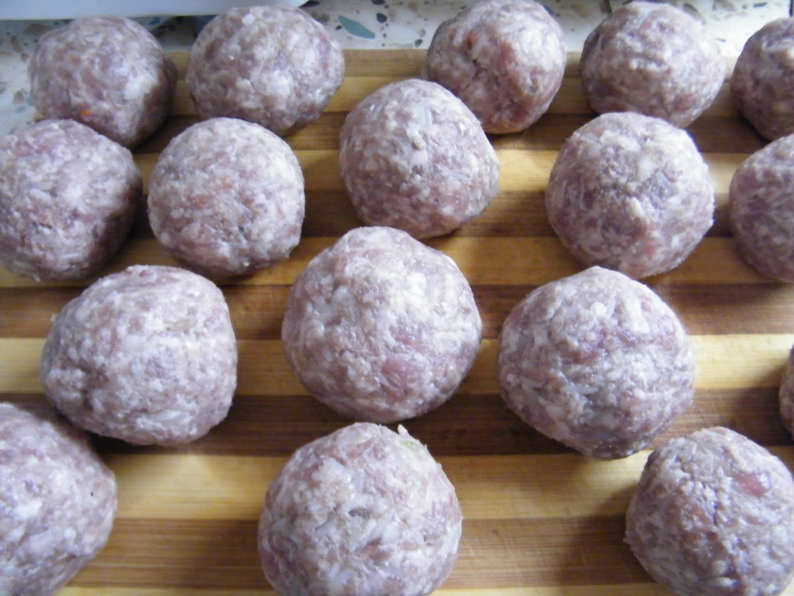Рис (около стакана) замочить в кипятке и заняться фаршем.1кг фарша свинина+говядина+лук+соль, перец +прочие любимые вкусности нужно хорошенько отбить, просто отколошматить, прямо брать полную ладонь фарша и с силой бросать его обратно в миску (без фанатизма))), добавить остывший и впитавший в себя воду рис, хорошенько вымешать и поставить в холодильник. Хорошо бы постоять ему там пару часиков.