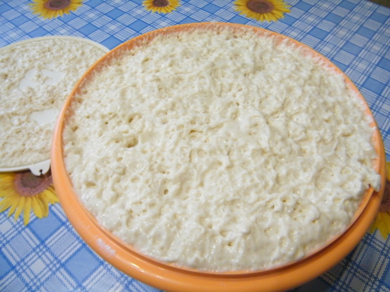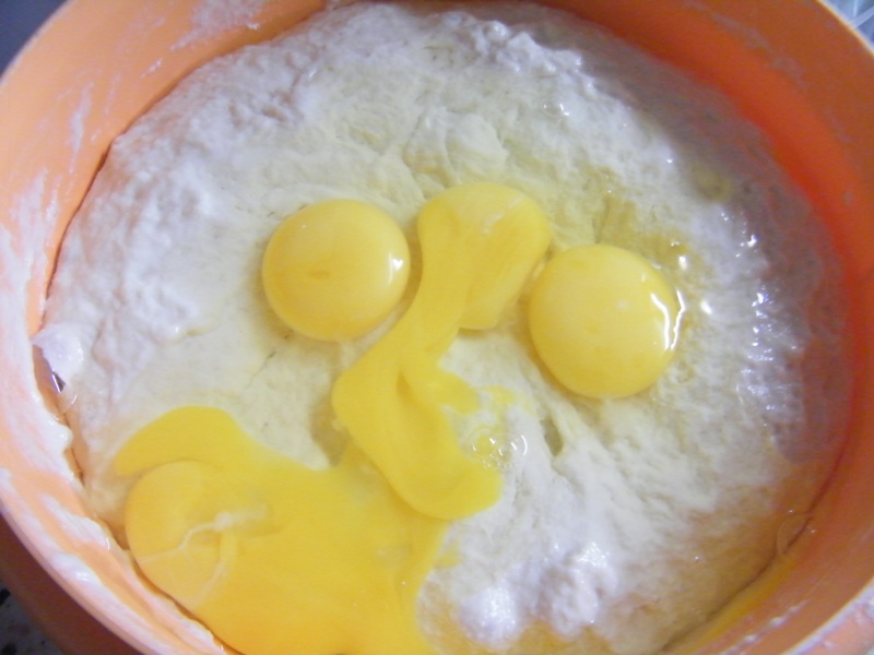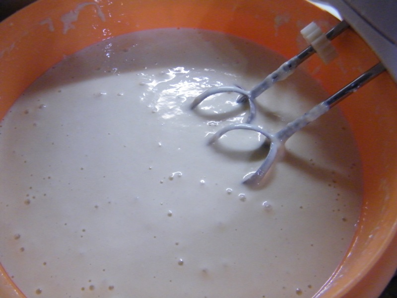 У меня чуть не убежало тесто, для подъема ему много времени не потребовалось. По рецепту нужно вбивать яйца по одному и взбивать миксером - я вбила все яйца сразу + растительное масло.