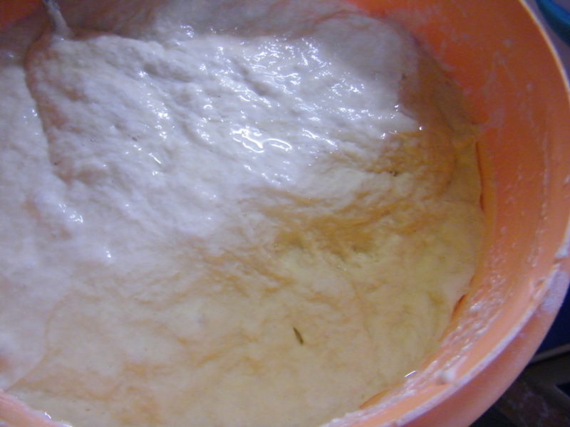 Подумала, что лишним не будет (густое тесто))) и добавила еще стакан просто крутого кипятка. Оставила на 30 минут для подъема - спохватилась вовремя!