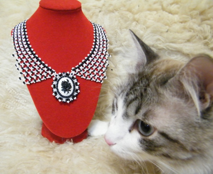 Плела немного отступая от схемы (размер бисера имеет значение))). Воротничок получился очень мягкий, изысканный. В таком украшении очень отчетливо представляю юных выпусниц института благородных девиц 18-19 века...