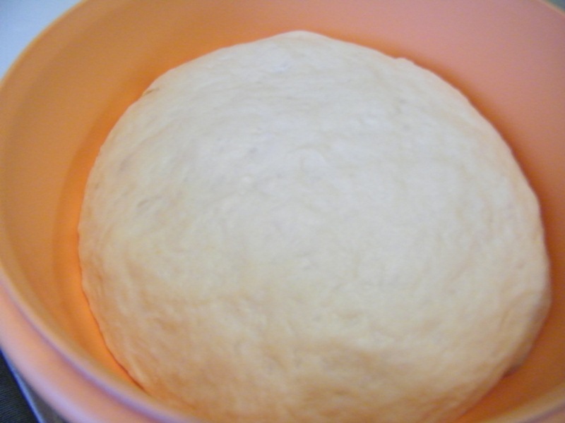 В миску налить оставшееся молоко + 2 желтка (теперь головная боль - куда пристроить белки?!))) + опара + мука = мягкое тесто. Я с мукой немного переборщила, но на вкусе это не отразилось. Главное, не сильно перебарщивать!)))