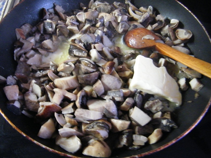 Грибочки стали поджариваться образуя румяную корочку, в это время и сметанка не повредит. она придаст грибам нежность и сливочный вкус.
