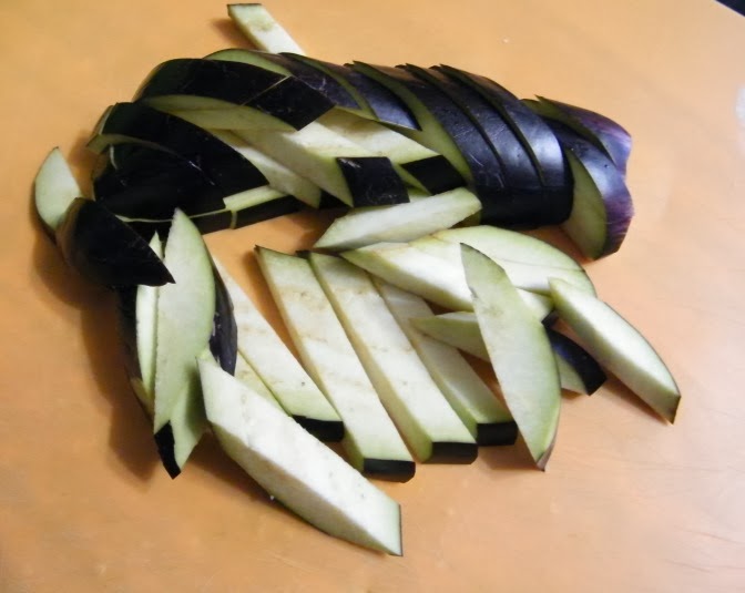 Манипуляции с баклажанами: помыть, порезать, сложить в емкость и посолить (0,5ч.л будет достаточно).