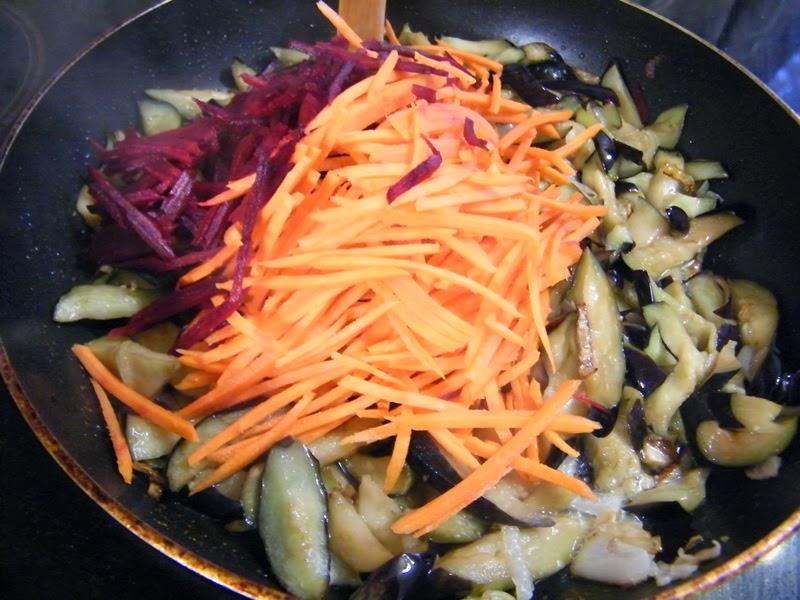 Не долго думая добавить морковь (у меня от борща осталась четвертинка свеклы, сошла за подружку морковки)))