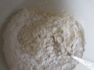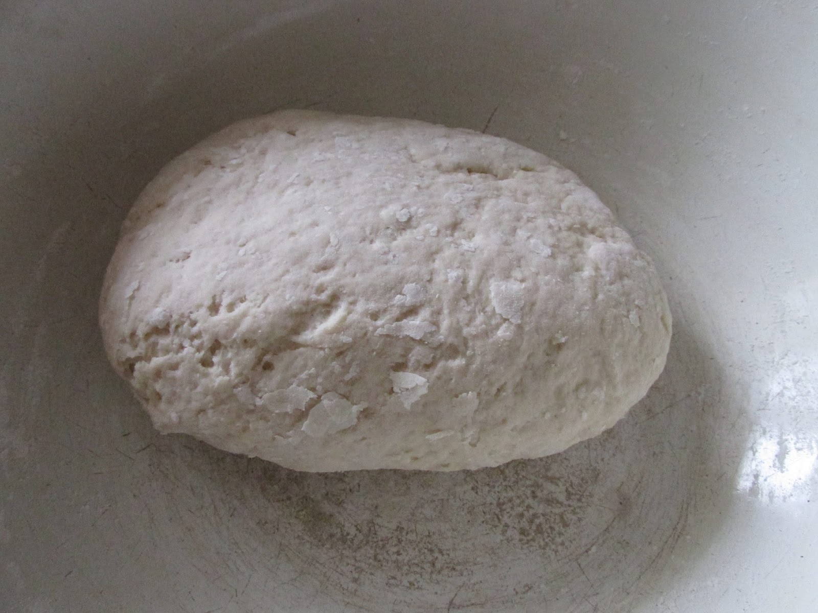 Добавить муку (приблизительно 400гр) и замесить не тугое тесто.