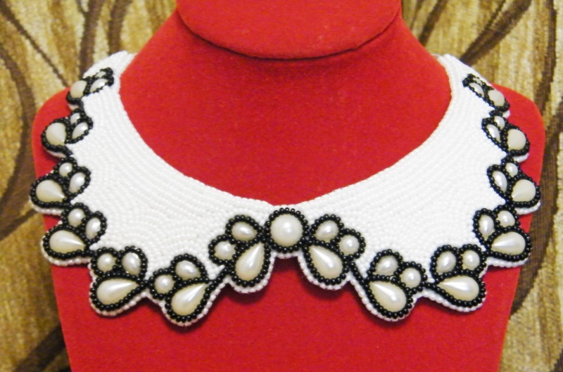 Просто опять воротничок. Классный цвет топленого молока. Бисер Тайвань, калибровка была жесткая, мусора вагон и маленькая тележка. Дольше перебирать бусинки, чем вышивать. А еще были и другие воротнички.