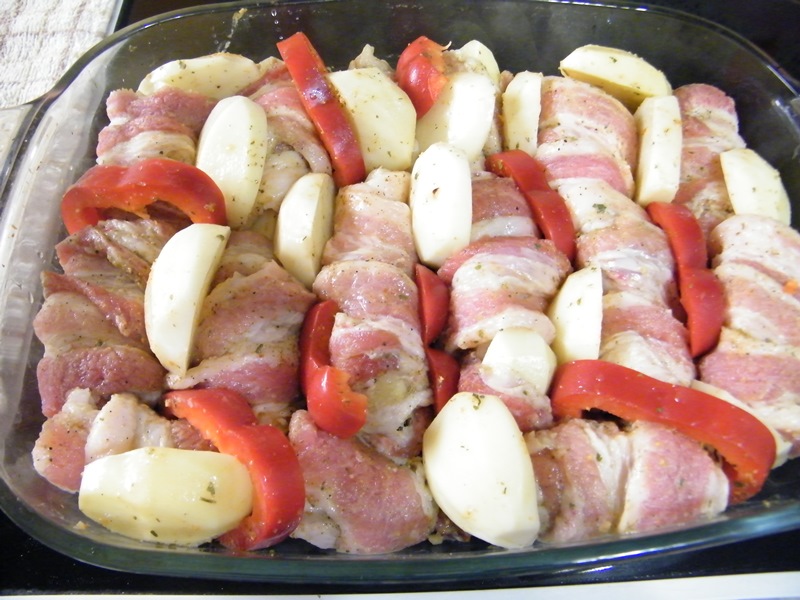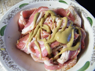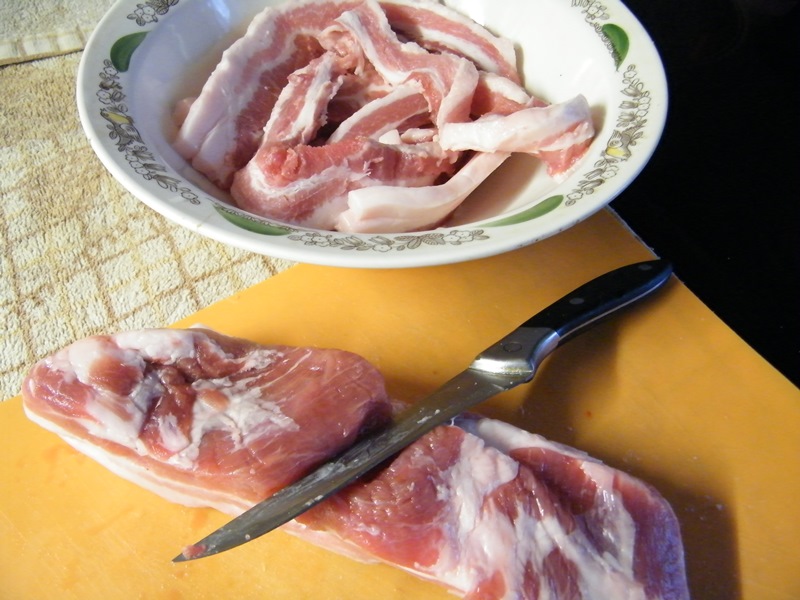 Вкусно, сытно, ароматно, гости довольны, хозяева тем более. Конечно, готовый бекон никто не отменял (и тогда не надо ничего мариновать), но мы ведь не ищем легких путей! Свежую грудинку с мясными прожилками , вернее с сальными прожилками, порезать на "беконные ленты".