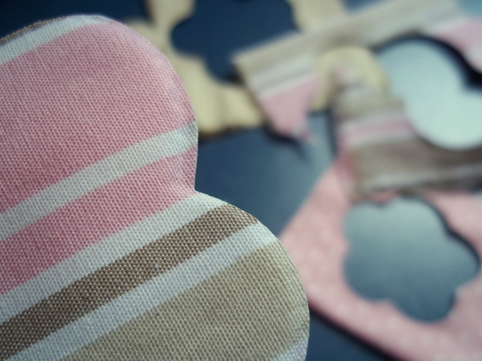 Отрежьте три прямоугольника ткани вы выбрали, одним из каждого шаблона и поместить цветы в эти прямоугольники и должна оставаться площадью около 2 см с трех сторон, как показано на рисунке выше. И большая часть для вас, чтобы покрыть цветок. Прямоугольник должен иметь подходящий размер, в котором вы можете сделать «сэндвич», сложив ткань чувствовал цветок в два раза.