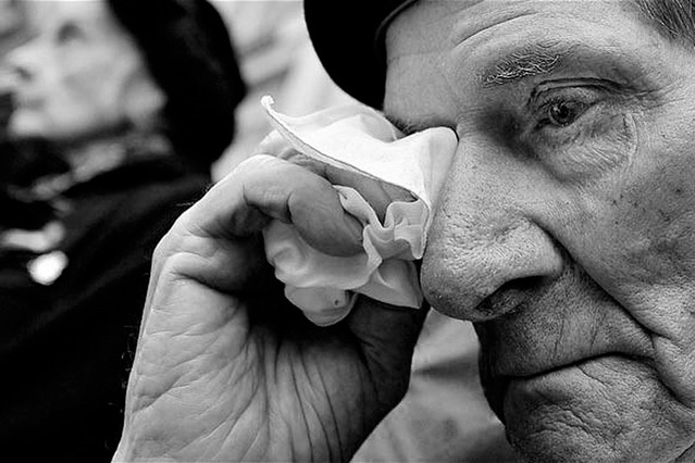 Вы видели, как плачут старики? Вы видели, как плачут старики? Безмолвно, тихо, незаметно. О чем же думают они Читая грустную газету? А замечали Вы как капает слеза Из щуплых глазок старика? Течет по бороде, морщинистым щекам, По сухонькой руке ползет она. Он вытирает черствый красный нос, Чуть шмыгает он от соленых слез. Как грустно знать, что сделала война, Смотря на этого седого старика. Вы видели как плачут эти люди? И как же сильно бьются их сердца! А видели глаза их? Словно тучка, Летящая куда-то от огня ... Ты слышал тихий, сиплый голосок их речи, И как порой им не легко на свете. Ведь иногда им не хватает хлеба, Чтоб не упасть от голода и снега. Но больше, не хватает им любви, Твоей любви! Заботы и совета. Без этого они обречены- На горе, слезы, жизнь без смеха. Без этого они огорчены, Что нету рядом человека, Который их утешит, успокоит, Чтоб в доме было для кого готовить. Который всегда сможет их защитить, В холодную ночь одеялом укрыть. Любите их люди, насколько возможно, Смотрите в глаза их, пока еще можно. И помните, что скоро уж близится день, Когда в миг погаснет огонь фонарей. Так видел ты как плачут старики? Не видел? Значит счастливы они. И глазки их пылают как огни, Как в темной улице сияют фонари. Ты улыбнись, и улыбнется он в ответ. И будет жить он так, хоть 200 лет. А если видел у них слезы на лице, Тогда поговори с ними об этом. О чем же думают они, Читая грустную газету?... © Copyright: Ольга Лизунова, 2016 Свидетельство о публикации №116082603492 Источники: 1, 2, 3, 4, 5, 6