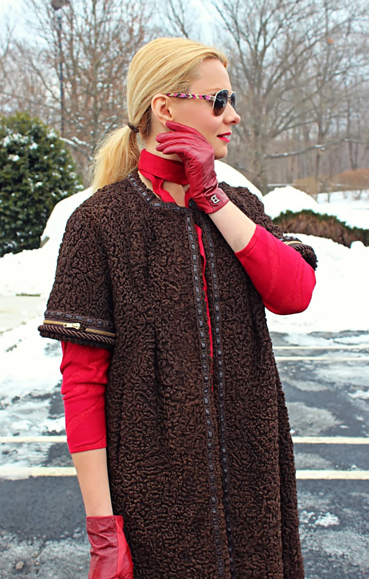 Интересная переделка старой каракулевой шубы в эдакий жакет для автоледи (я так думаю, поскольку такой короткий рукав более никуда не подойдёт).