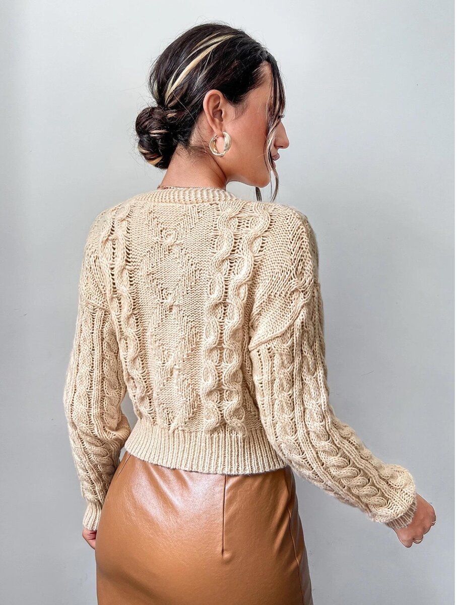 В следующей модели мне понравился ее приятный цвет (золотисто-бежевый, с шелковистым блеском) и узоры - теневые ромбы и волны из кос.