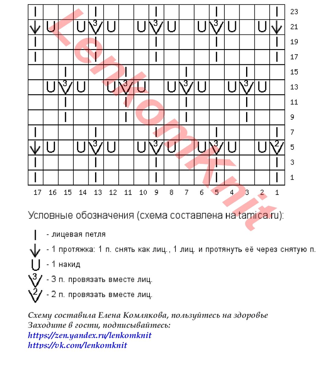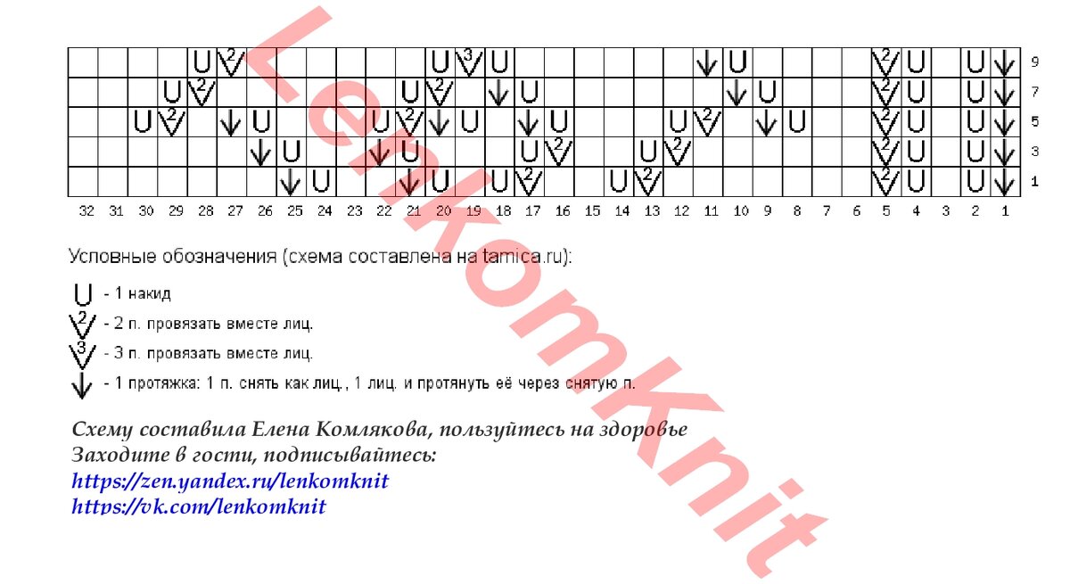 Схема ажурного узора - на рисунке, он очень простой. На схеме нарисован один раппорт в ширину и высоту.